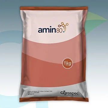 Amin 80 es un bioestimulante en polvo de rápida absorción, constituido por aminoácidos libres (L-α-aminoácidos) de origen vegetal como prolina, glicina y ácido glutámico, entre otros. Contiene 50% p/p de materia orgánica y 29% p/p de carbono. Las plantas pueden utilizar estos aminoácidos de forma inmediata para estimular el desarrollo vegetativo, la floración, la cuaja y el crecimiento de frutos.